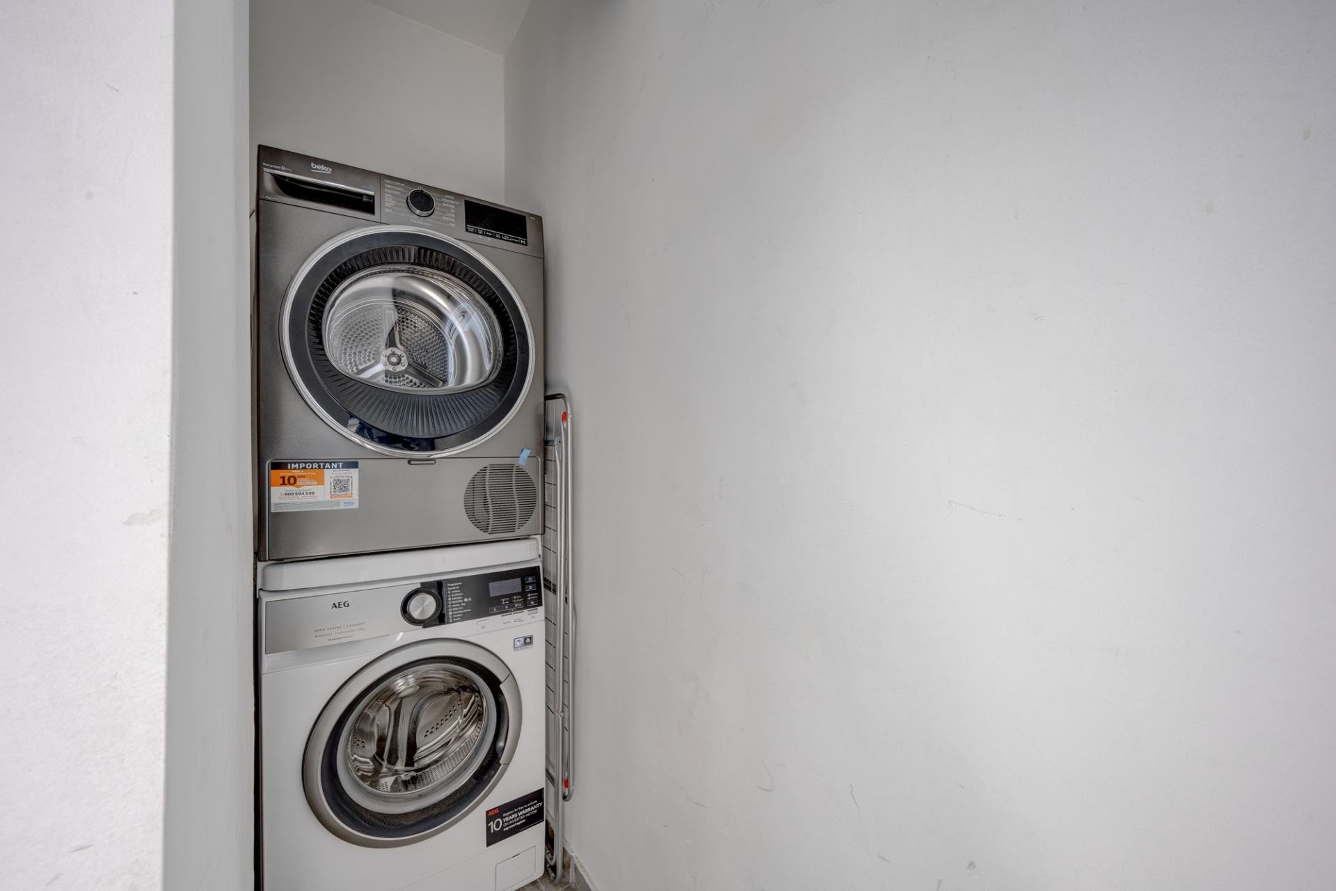 Bucataria este mobilata si utilata cu plita, cuptor, frigider, masina de spalat rufe si uscator de rufe. Baia este amenajata cu cabina de dus si obiecte sanitare noi. Camera este mobilata cu pat matrimonial, dulapuri pentru haine si o zona de luat masa si TV. Pardoselile sunt placate cu parchet laminat in camera si gresie in hol, baie si bucatarie.