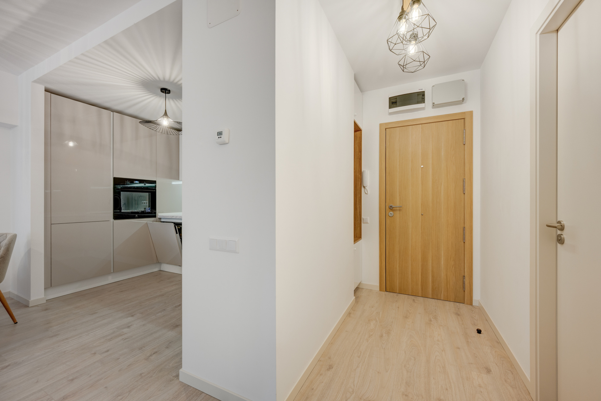 Bucataria este mobilata si utilata cu toate electrocasnicele necesare: masina de spalat vase, plita, cuptor, hota, frigider, toate incorporate in mobilier, noi si in garantie( marca Electrolux). Mobilierul de bucatarie oferta foarte multe spatii pentru depozitare.
