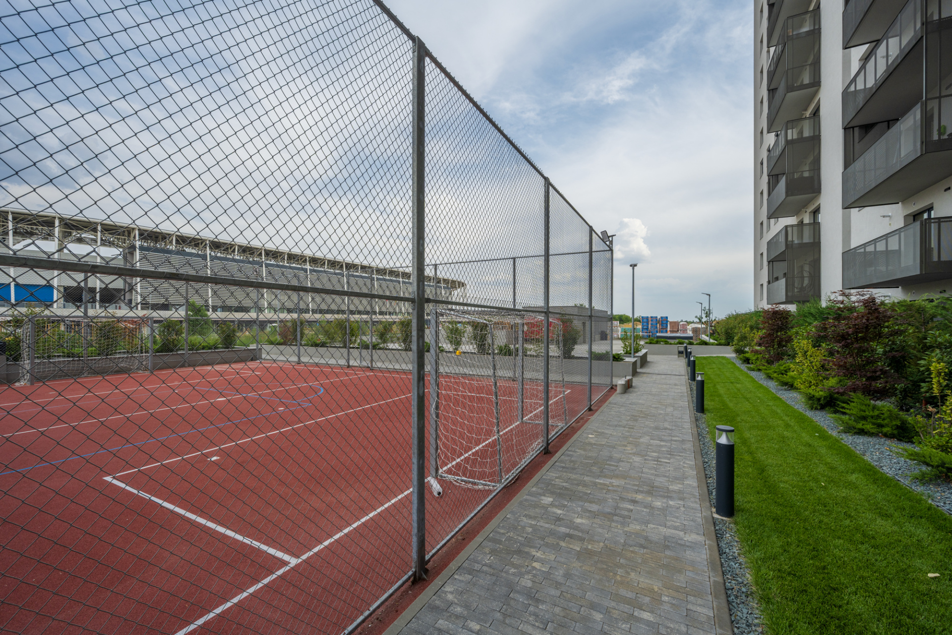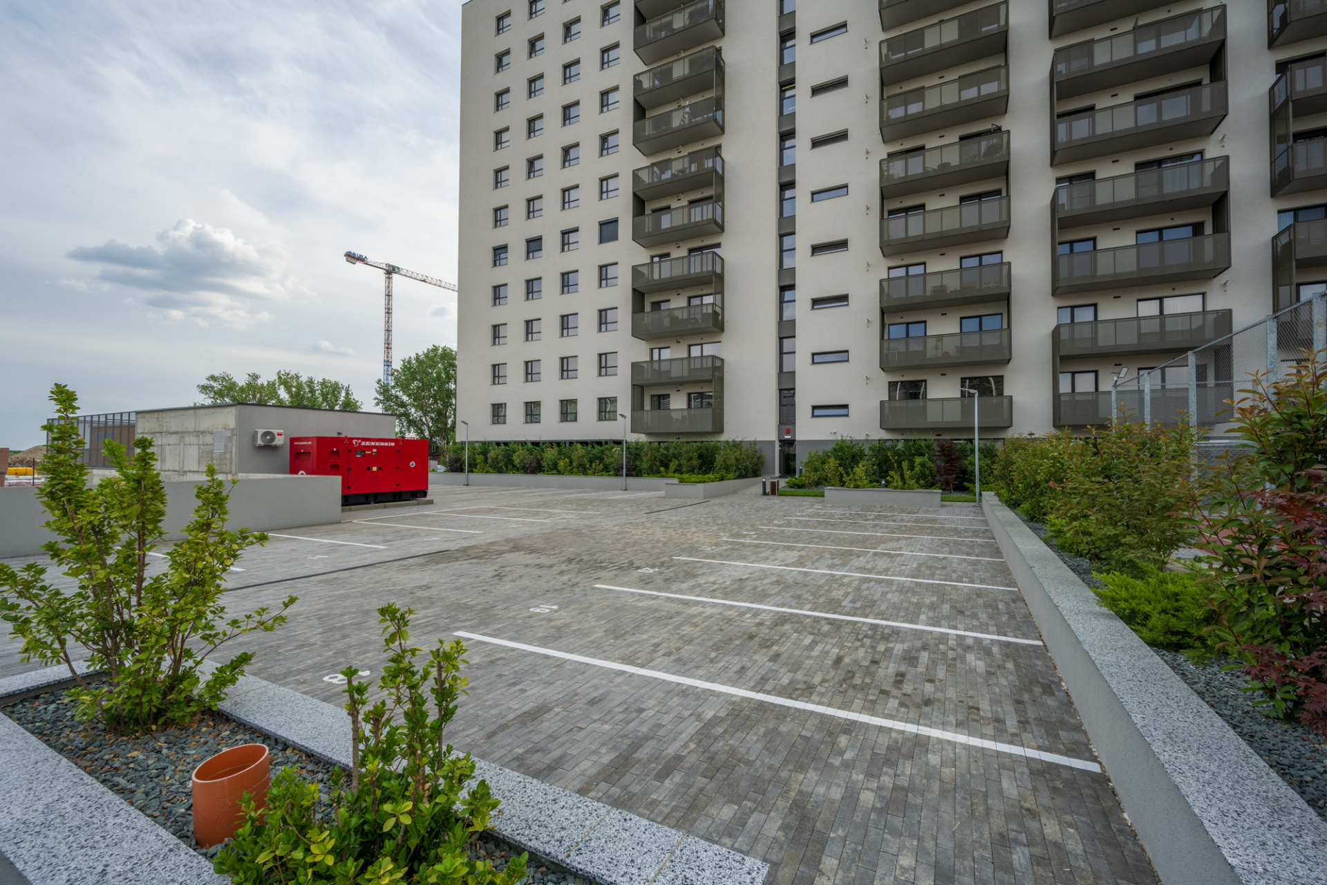 Imobilul este dotat cu 2 lifturi, acces securizat, modern executat si decorat, dotat cu sistem de incalzire inclusiv pe casa scarii. Imobilul are spatii de recreere, alei amenajate, spatii verzi, teren de baschet, parcari pentru vizitatori.