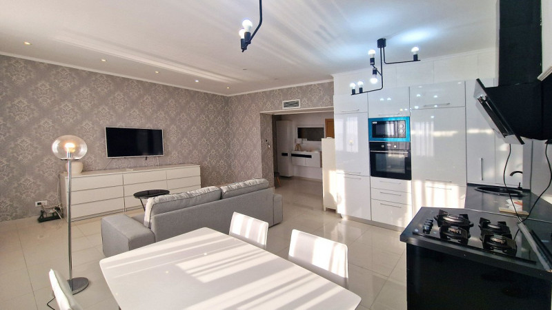 Locuința este amplasată la etajul 10 din 13 și beneficiază de o priveliște deschisă, lumină naturală și un nivel ridicat de intimitate. Apartamentul se vinde complet mobilat și utilat, cu electrocasnice și piese de mobilier de calitate superioară, fiind gata pentru mutare imediată. Compartimentarea este bine gândită: hol generos dotat cu dressing, baie modernă cu cadă, mașină de spălat cu uscător și uscător de păr, dormitor matrimonial confortabil, prevăzut cu pat, saltea premium, perdele și draperii noi, plus un Smart TV de 140 cm cu Netflix. Bucătăria open space este complet echipată și se îmbină armonios cu livingul, creând un spațiu primitor ideal pentru relaxare.