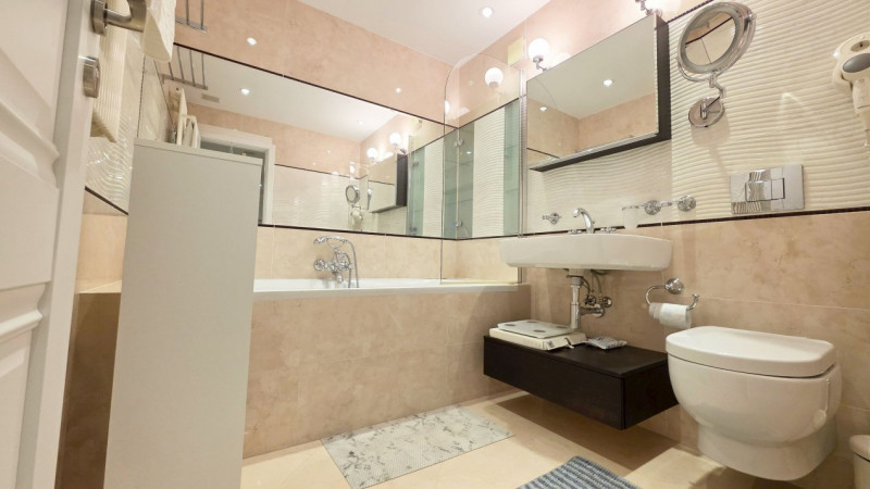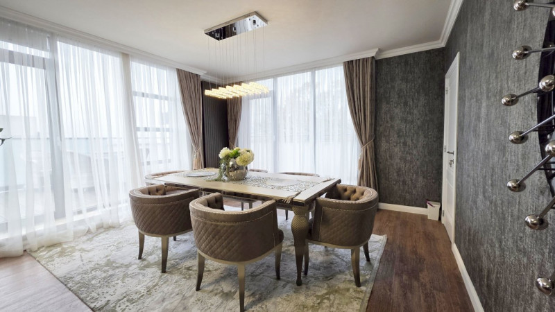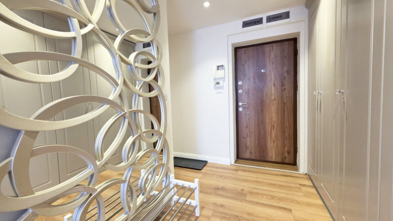 Două dormitoare spatioase si doua bai moderne completeaza aceasta oaza de liniste si eleganta. Holul imens cu dulapuri tip dressing iti asigura spatiu de depozitare si organizare perfecta, in timp ce bucataria mobilata si utilata complet te inspira sa creezi cele mai rafinate preparate culinare.