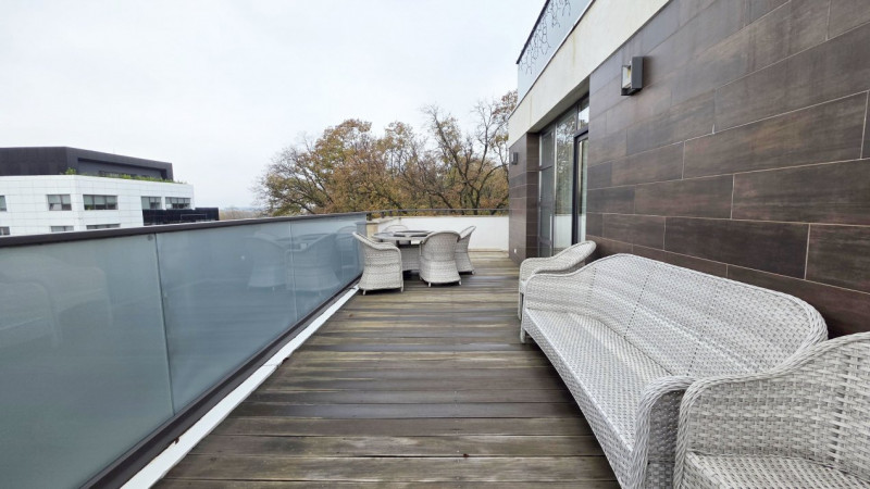 Imagineaza-ti un refugiu de vis, situat la etajul al patrulea al elegantului complex Parcul Privighetorilor din Baneasa, pe Aleea Privighetorilor 85, la doar cativa pasi de gradina Zoologica. Acest apartament superb iti ofera o experienta unica, incarcata de emotie si confort autentic. Livingul generos, luminat natural, se extinde spre o terasă splendida, unde poti admira relaxat frumoasa priveliste spre padure, un adevarat colt de rai în inima naturii.
