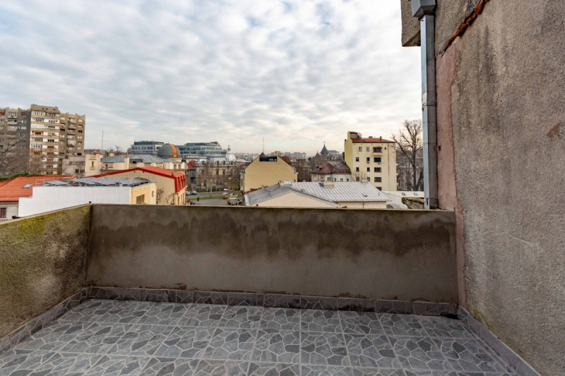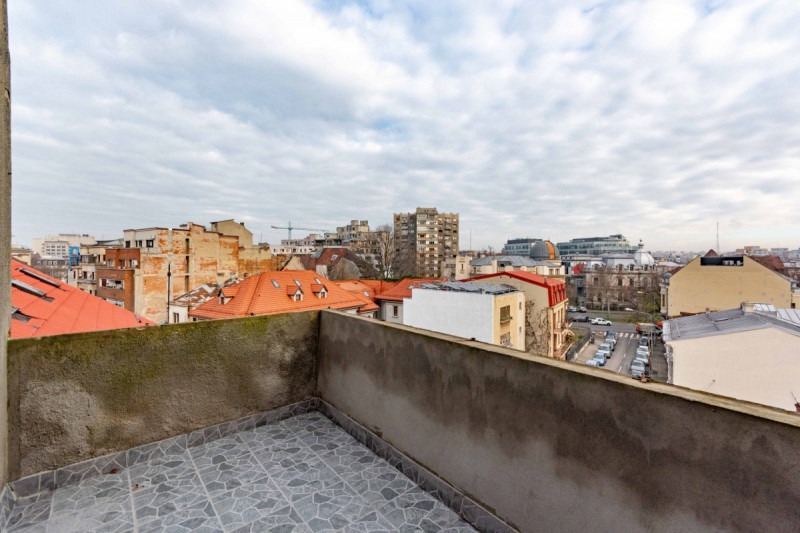 Elementul spectaculos al acestui apartament este, fără îndoială, terasa generoasă. De aici, vă puteți bucura de o vedere liberă și panoramică asupra orașului, un avantaj rar întâlnit în zona ultra centrală, unde densitatea clădirilor este ridicată. Este spațiul ideal pentru relaxare deasupra agitației urbane, oferind un cadru perfect pentru apusuri memorabile și momente de liniște.