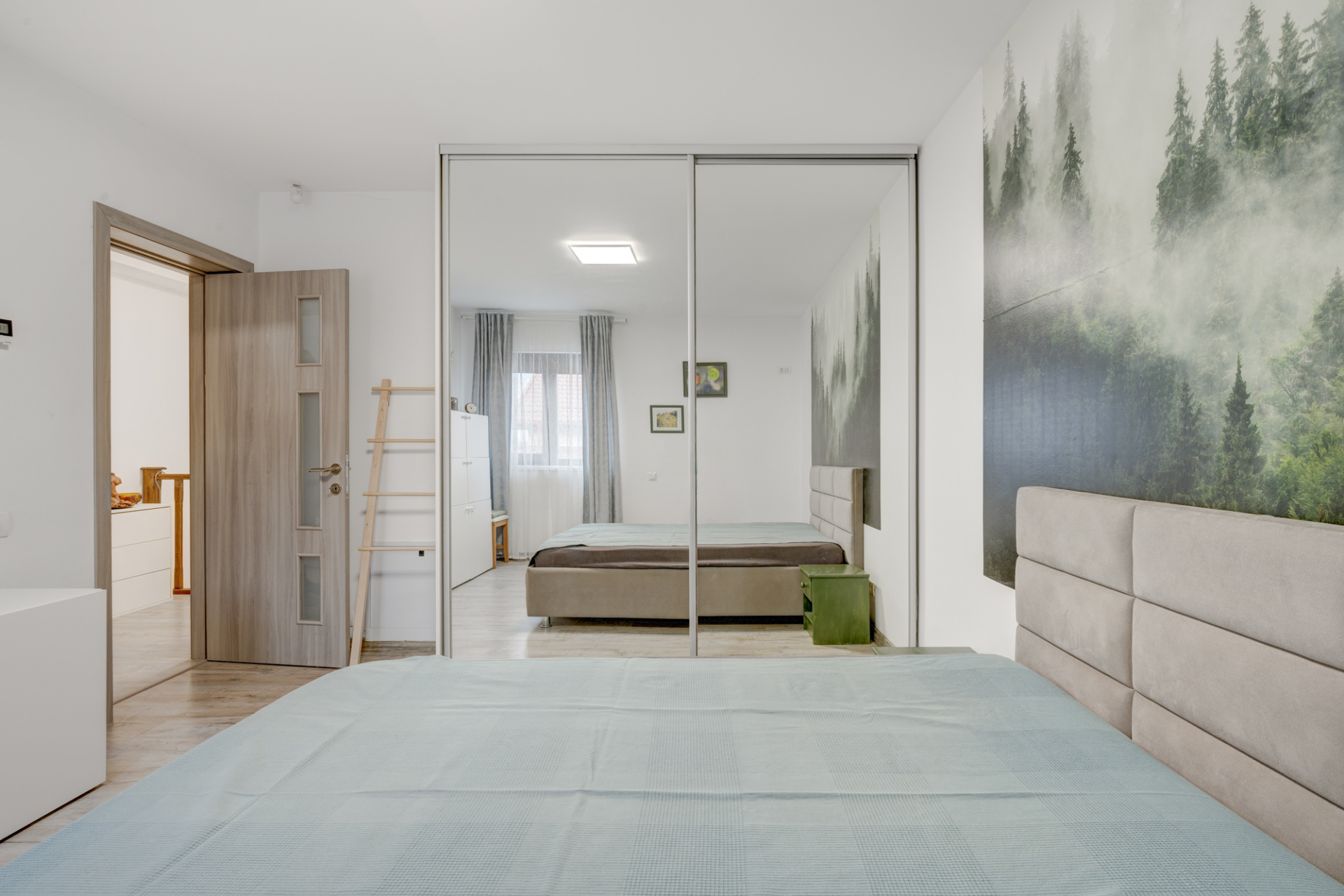 Bucataria este generoasa, mobilata Ikea si echipata cu toate electrocasnicele necesare: plita, cuptor, hota, masina de spalat vase, frigider. Tot in bucatarie este amenajat un loc pentru luat masa pentru 4 persoane. Bucataria este deschisa cu livingul dar exista si posibiitate de inchidere, la nevoie. Livingul este amenajat cu 2 canapele si comoda cu TV. Cele 3 dormitoare sunt complet mobilate.