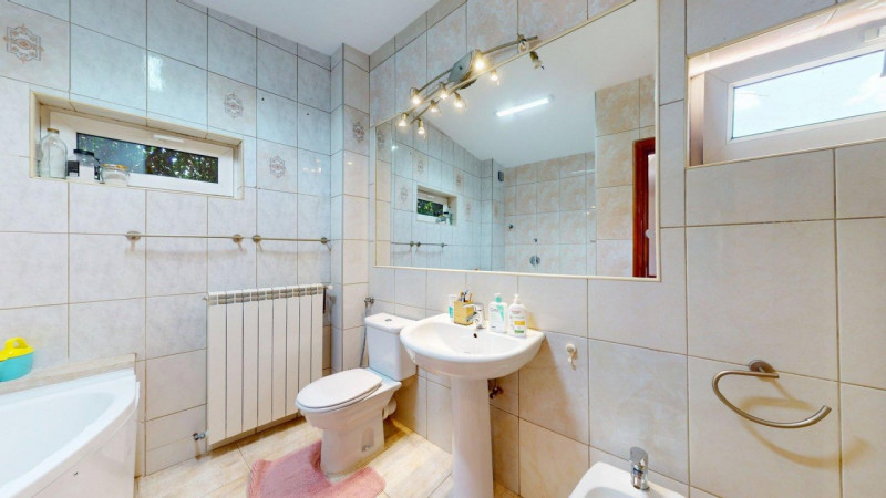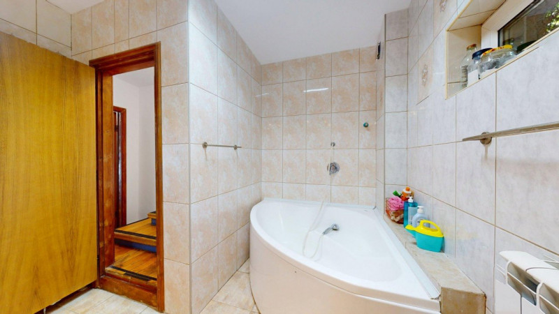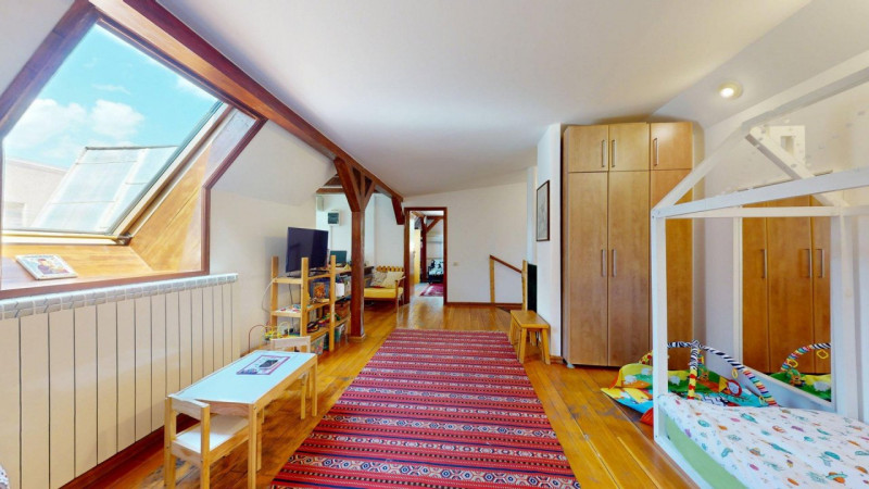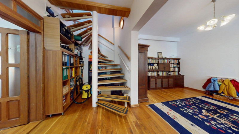 Casa Parter + Mansarda, compusa din 5 camere cu o suprafata de 146 mp, dispune, 3 Boxe, Terasa, Garaj, cu o suprafata de 58 mp, in total 204 mp, construitii. Casa este construita in anul 1925, din caramida, fundatia si structura a fost reconsolidata si mansardata in An 2000, structura mansardei este din lemn, pardoseli din lemn masiv, instalatia electrica si sanitara refacuta, incalzirea se face cu Centrala pe gaz cu calorifere schimbate in 2021, geamuri termopan, usile exterioare sunt din lemn masiv, dispune de 2 intrari separate. In an 2024 a fost renovata integral, dispune de videointerfon, garaj cu sistem de incalzire, imobilul dispune de cos pentru semineu.