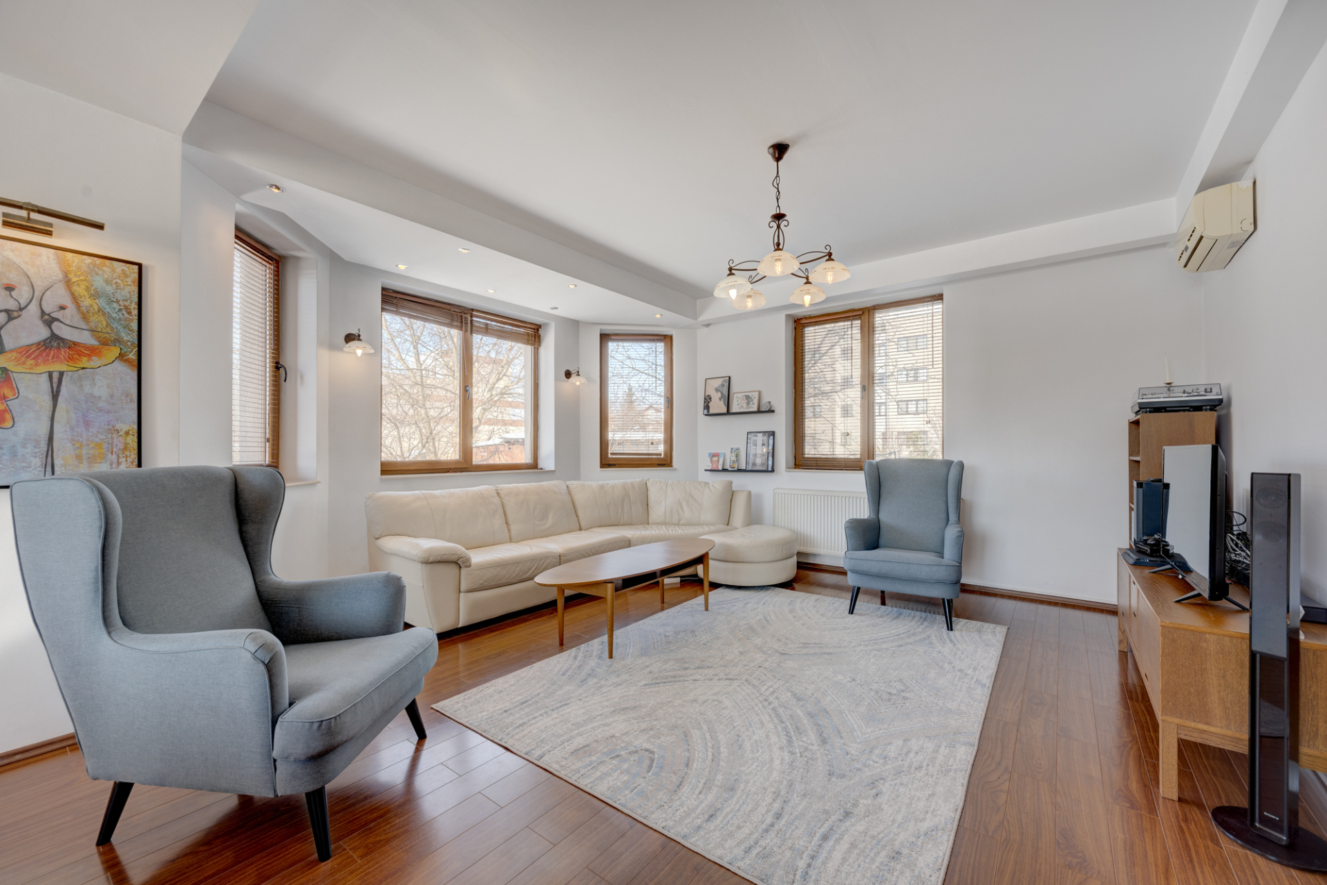Incalzirea se realizeaza prin centrala termica proprie pe gaz iar pentru racire sunt intalate 4 aparate de aer conditionat (1 AC la parter, 2 AC la etajul 1 si 1 AC la mansarda). Imobilul este termoizolat exterior iar acoperisul este Lindab. Cladirea are structura din beton armat cu plansee din beton si ziduri interioare si exterioare din caramida. Toate baile au ferestre pentru aerisire naturala. Casa este foarte bine iluminata natural, avand ferestre orientate catre SUD-VEST.
