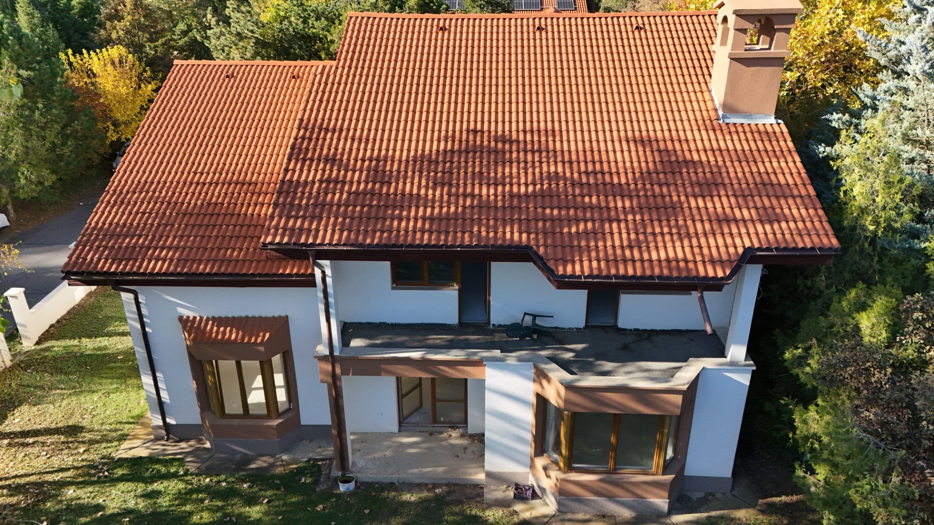In partea din spate acestuia, este suficient spatiu ca noul proprietar sa-si amenajeze dupa bunul plac gradina sau piscina cu zona de relaxare. Intimitatea este asigurata de pozitia imobilului in zona limitrofa a ansamblului. Are sistem de alarma cu supraveghere video, este imprejmuita de un gard din beton ce oferă intimitate și siguranță.