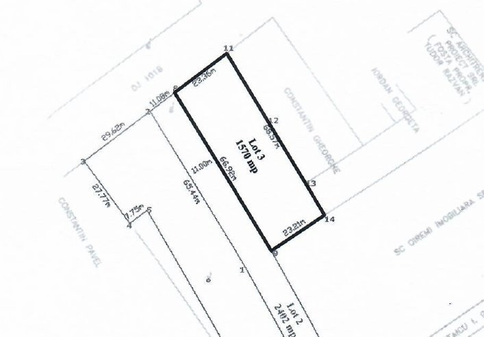 În mijlocul localității Ciofliceni, chiar la strada principală, colț cu un drum pietruit lat de 11m, este disponibil la vânzare un lot de teren de 1.570mp. Lotul are o deschidere de 23m la drumul principal și de 66m la drumul pietruit.